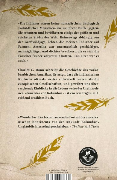 «Die Indianer waren keine nomadischen, ökologisch vorbildlichen Menschen, die zu Pferde Büffel jagten. Sie erbauten und bevölkerten einige der größten und reichsten Städte der Welt. Keineswegs abhängig von der Großwildjagd, lebten die meisten Indianer auf Farmen. Amerika war unermesslich geschäftiger, mannigfaltiger und dichter bevölkert, als es sich die Forscher früher vorgestellt hatten. Und älter war es auch.»