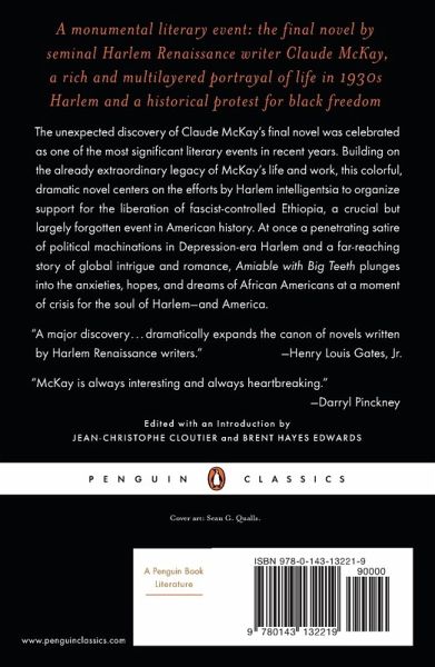 Claude McKay is such a romantic, questing figure in American literature that he belongs as much to the Lost Generation as he does to the Harlem Renaissance. The dramatic work of his expatriate youth is celebrated, but much less attention has been paid to what he wrote after he returned to New York in the mid 1930s. Indeed, his autobiography, a monumental survey of Harlem, and his occasional pieces were all we knew of his late work. Now two brilliant scholars have discovered McKay's last novel and thereby changed our picture of his closing years. Amiable with Big Teeth also tells us a lot about how black people around the globe responded to the invasion of Ethiopia and the spectre of fascism. McKay is always interesting and always heartbreaking, he is so original and desperate and brave.