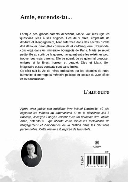 Lorsque ses grands-parents décèdent, Marie voit ressurgir les questions liées à ses origines. Ces deux êtres, empreints de droiture et d¿engagement, l¿ont enfermée dans des secrets qüelle doit dénouer. Jean était communiste et va-t'en-guerre ; Ramonda, concierge dans un immeuble bourgeois de Paris. Marie se revoit petite fille au sortir de la guerre, naviguant entre les extrêmes pour trouver ses vrais parents. Elle se nourrit de ce qüon lui propose : ombres et lumières, horreur et beauté, Dieu et Marx. Son imaginaire et ses combats sont sans limites. Ce récit suit la vie de héros ordinaires sur les chemins de notre humanité. Il interroge la mémoire politique et sociale du XXe siècle et sa transmission.