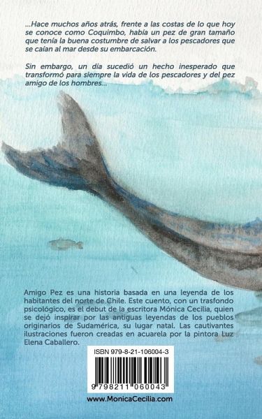 Hace muchos años, en Chile, frente a las costas de lo que hoy se conoce como Coquimbo, había un pez de gran tamaño que tenía la buena costumbre de salvar a los pescadores que se caían al mar desde su embarcación. Sin embargo, un día sucedió un hecho inesperado que transformó para siempre la vida de los pescadores y del pez amigo de los hombres. Amigo Pez es una historia basada en una leyenda de los habitantes del norte de Chile. Este cuento, con un trasfondo psicológico, es el debut de la escritora Mónica Cecilia, quien se dejó inspirar por las antiguas leyendas de los pueblos originarios de Sudamérica, su lugar natal. Las cautivantes ilustraciones fueron creadas en acuarela por la pintora Luz Elena Caballero.