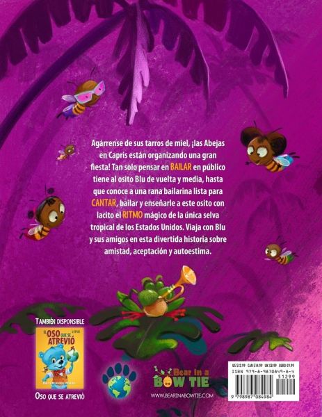 Únete a Blu, el Osito con Lacito, mientras explora el mundo en su Oso-avión y descubre todo tipo de caras en los lugares más interesantes. Una combinación única de ficción y no ficción, UnFROGettable Friends sigue a Blu y su tripulación en una emocionante aventura a Puerto Rico. Cada niño aprenderá algo nuevo en este libro bellamente ilustrado escrito por Luis Fonsi y Barry Waldo. Agárrense de sus tarros de miel, ¡las Abejas en Capris están organizando una gran fiesta! Tan solo pensar en bailar en público tiene al osito Blu de Vuelta y media, hasta que conoce a una rana bailarina lista para…mehr