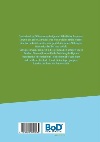 Sehr schnell verfällt man dem Amigurumi Häkelfieber. Besonders jetzt, in der kalten Jahreszeit, wird wieder viel gehäkelt. Hierbei sind der Fantasie keine Grenzen gesetzt. Als kleines Mitbringsel freuen sich darüber jung und alt.Die Figuren werden zumeist mit festen Maschen gehäkelt und in Runden. Dieses sollte man für die Erstellung der Figuren beherrschen. Alle Amigurumi Tierchen sind aber sehr leicht nachzuhäkeln, das Buch ist auch für Anfänger geeignet. Ich wünsche Ihnen viel Freude damit.