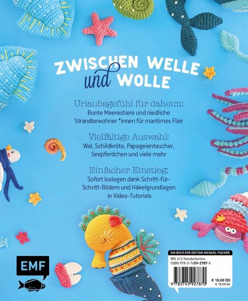 Niedliche Häkelfiguren aus der farbenfrohen Welt des Meeres zum NachhäkelnPerfekte Geschenkidee für alle, die von der See träumen oder das Meer liebenDetaillierte Schritt-für-Schritt-Anleitungen und Video-Tutorials, die jede Technik erklären