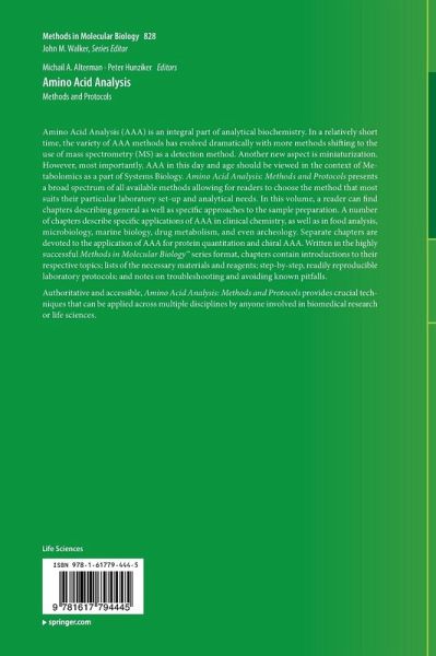 Authoritative and accessible, Amino Acid Analysis: Methods and Protocols provides crucial techniques that can be applied across multiple disciplines by anyone involved in biomedical research or life sciences.