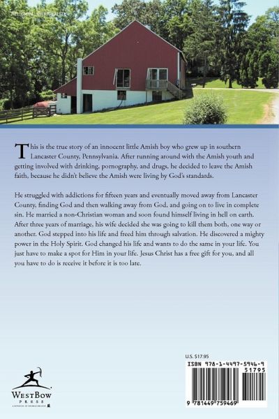 This is the true story of an innocent little Amish boy who grew up in southern Lancaster County, Pennsylvania. After running around with the Amish youth and getting involved with drinking, pornography, and drugs, he decided to leave the Amish faith, because he didn't believe the Amish were living by God's standards. He struggled with addictions for fifteen years and eventually moved away from Lancaster County, finding God and then walking away from God, and going on to live in complete sin. He married a non-Christian woman and soon found himself living in hell on earth. After three years of marriage, his wife decided she was going to kill them both, one way or another. God stepped into his life and freed him through salvation. He discovered a mighty power in the Holy Spirit. God changed his life and wants to do the same in your life. You just have to make a spot for Him in your life. Jesus Christ has a free gift for you, and all you have to do is receive it before it is too late.