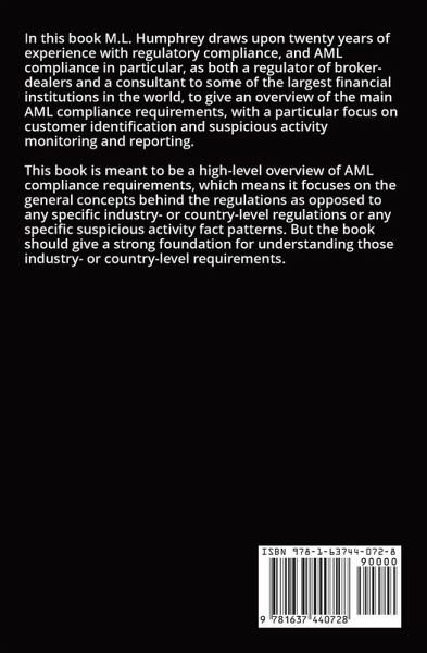 In this book M.L. Humphrey draws upon twenty years of experience with regulatory compliance, and AML compliance in particular, as both a regulator of broker-dealers and a consultant to some of the largest financial institutions in the world, to give an overview of the main AML compliance requirements, with a particular focus on customer identification and suspicious activity monitoring and reporting. This book is meant to be a high-level overview of AML compliance requirements, which means it focuses on the general concepts behind the regulations as opposed to any specific industry- or country-level regulations or any specific suspicious activity fact patterns. But the book should give a strong foundation for understanding those industry- or country-level requirements.