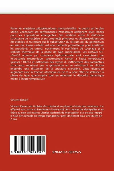 Parmi les matériaux piézoélectriques monocristallins, le quartz est le plus utilisé. Cependant ses performances intrinsèques atteignent leurs limites pour les applications émergentes. Des relations entre la distorsion structurale du matériau et ses propriétés physiques et piézoélectriques ont été établies. Il en ressort que la substitution du silicium par du germanium au sein du réseau cristallin est une méthode prometteuse pour améliorer les propriétés du quartz, notamment le coefficient de couplage et la stabilité thermique de la phase de type quartz-alpha. Les cristaux Si1-xGexO2 obtenus par croissance hydrothermale sont caractérisés par microsonde électronique, spectroscopie Raman à haute température (jusqu'à 1100°C) et diffraction des rayons X. L'affinement des paramètres structuraux montrent que le germanium en se substituant au silicium engendre une distorsion de la structure cristalline. Cette distorsion augmente avec la fraction atomique en Ge et a pour effet de stabiliser la phase de type quartz-alpha tout en réduisant le désordre dynamique même à haute température.