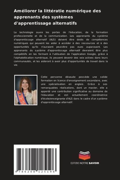 La technologie ouvre les portes de l'éducation, de la formation professionnelle et de la communication. Les apprenants du système d'apprentissage alternatif (ALS) doivent être dotés de compétences numériques qui peuvent les aider à accéder à des ressources et à des opportunités qu'ils n'auraient peut-être pas eues auparavant. Les apprenants du système d'apprentissage alternatif devraient être plus compétitifs en les formant à l'utilisation de l'application Google, grâce à l'alphabétisation numérique, ils peuvent devenir des voix actives dans leurs communautés, et les aideront à avoir plus d'opportunités de travail dans la vie.