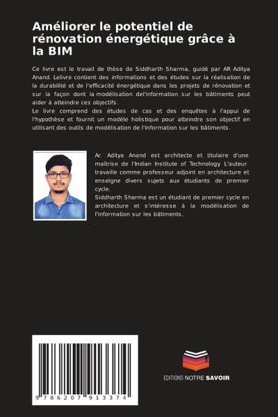 Ce livre est le travail de thèse de Siddharth Sharma, guidé par AR Aditya Anand. Lelivre contient des informations et des études sur la réalisation de la durabilité et de l'efficacité énergétique dans les projets de rénovation et sur la façon dont la modélisation del'information sur les bâtiments peut aider à atteindre ces objectifs.Le livre comprend des études de cas et des enquêtes à l'appui de l'hypothèse et fournit un modèle holistique pour atteindre son objectif en utilisant des outils de modélisation de l'information sur les bâtiments.