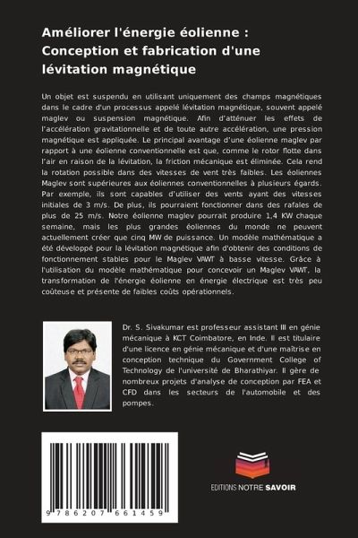Un objet est suspendu en utilisant uniquement des champs magnétiques dans le cadre d'un processus appelé lévitation magnétique, souvent appelé maglev ou suspension magnétique. Afin d'atténuer les effets de l'accélération gravitationnelle et de toute autre accélération, une pression magnétique est appliquée. Le principal avantage d'une éolienne maglev par rapport à une éolienne conventionnelle est que, comme le rotor flotte dans l'air en raison de la lévitation, la friction mécanique est éliminée. Cela rend la rotation possible dans des vitesses de vent très faibles. Les éoliennes Maglev sont supérieures aux éoliennes conventionnelles à plusieurs égards. Par exemple, ils sont capables d'utiliser des vents ayant des vitesses initiales de 3 m/s. De plus, ils pourraient fonctionner dans des rafales de plus de 25 m/s. Notre éolienne maglev pourrait produire 1,4 KW chaque semaine, mais les plus grandes éoliennes du monde ne peuvent actuellement créer que cinq MW de puissance. Un modèle mathématique a été développé pour la lévitation magnétique afin d'obtenir des conditions de fonctionnement stables pour le Maglev VAWT à basse vitesse. Grâce à l'utilisation du modèle mathématique pour concevoir un Maglev VAWT, la transformation de l'énergie éolienne en énergie électrique est très peu coûteuse et présente de faibles coûts opérationnels.