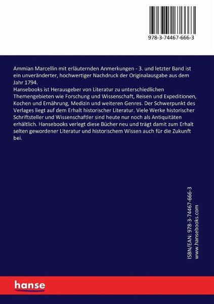 Ammian Marcellin mit erläuternden Anmerkungen - 3. und letzter Band ist ein unveränderter, hochwertiger Nachdruck der Originalausgabe aus dem Jahr 1794.