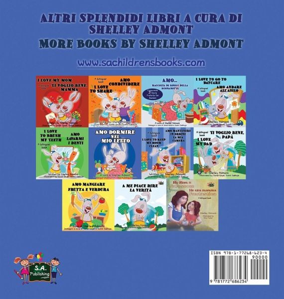 Italian English Bilingual children's book Perfect for kids studying Italian or English as their second language.This fun children's picture book follows the story of cute little bunny, Jimmy. He lives with his family in a small, nice house in the forest. The problem is that Jimmy doesn't want to sleep in his own bed. Every night he sneaks quietly into his parents' room and falls asleep in their bed. Until one night something unexpected happened …. This story may be ideal for reading to your kids at bedtime and enjoyable for the whole family as well! Questo divertente libro illustrato per bambini segue la storia del piccolo e grazioso coniglietto Jimmy. Jimmy non vuole dormire nel suo letto. Ogni notte si intrufola nella camera dei suoi genitori e si mette a dormire nel loro letto. Fino a quando una notte succede un imprevisto… Potrebbe essere ideale leggere questa storia ai propri bambini prima di andare a letto oppure come divertimento per tutta la famiglia!