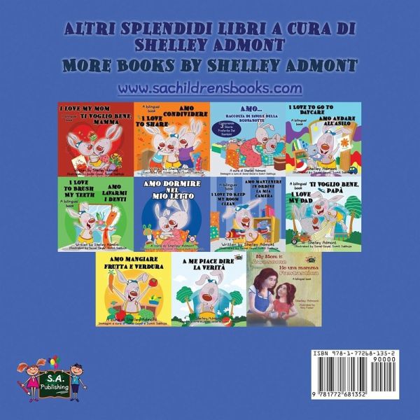 Italian English bilingual children's book Perfect for kids studying Italian or English as their second language.This fun children's picture book follows the story of cute little bunny, Jimmy. He lives with his family in a small, nice house in the forest. The problem is that Jimmy doesn't want to sleep in his own bed. Every night he sneaks quietly into his parents' room and falls asleep in their bed. Until one night something unexpected happened …. This story may be ideal for reading to your kids at bedtime and enjoyable for the whole family as well! Questo divertente libro illustrato per bambini segue la storia del piccolo e grazioso coniglietto Jimmy. Jimmy non vuole dormire nel suo letto. Ogni notte si intrufola nella camera dei suoi genitori e si mette a dormire nel loro letto. Fino a quando una notte succede un imprevisto… Potrebbe essere ideale leggere questa storia ai propri bambini prima di andare a letto oppure come divertimento per tutta la famiglia!