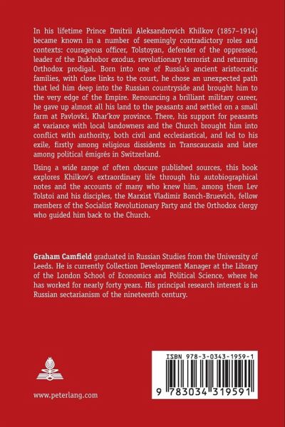 In his lifetime Prince Dmitrii Aleksandrovich Khilkov (1857-1914) became known in a number of seemingly contradictory roles and contexts: courageous officer, Tolstoyan, defender of the oppressed, leader of the Dukhobor exodus, revolutionary terrorist and returning Orthodox prodigal. Born into one of Russia's ancient aristocratic families, with close links to the court, he chose an unexpected path that led him deep into the Russian countryside and brought him to the very edge of the Empire. Renouncing a brilliant military career, he gave up almost all his land to the peasants and settled on a small farm at Pavlovki, Khar'kov province. There, his support for peasants at variance with local landowners and the Church brought him into conflict with authority, both civil and ecclesiastical, and led to his exile, firstly among religious dissidents in Transcaucasia and later among political émigrés in Switzerland.