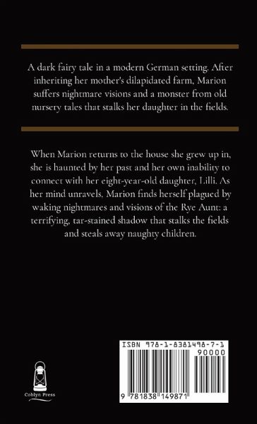 A dark fairy tale in a modern German setting. After inheriting her mother's dilapidated farm, Marion suffers nightmare visions and a monster from old nursery tales that stalks her daughter in the fields. When Marion returns to the house she grew up in, she is haunted by her past and her own inability to connect with her eight-year-old daughter, Lilli. As her mind unravels, Marion finds herself plagued by waking nightmares and visions of the Rye Aunt: a terrifying, tar-stained shadow that stalks the fields and steals away naughty children. This is a standalone tale of about 7,500 words, and is the fourth installment in the Dark Folklore series. Content warning: this story contains reference to child abuse, mental illness, postnatal depression, and substance abuse.