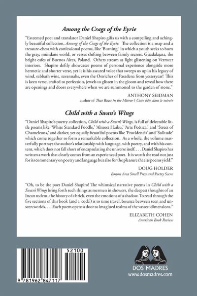 Daniel Shapiro's Among the Crags of the Eyrie brings together several strands in the poet's oeuvre to date, namely, confessional poetry, poems relating to family and relationships, and ekphrastic verse. The poems in this new collection are constructed with remarkable precision, each a gift of music and form. They seek to ascend and descend, the way eagles do from their eyries, but also transcend, as suggested in the title poem. Others grouped in the book's four sections include a confession provoked by a fire, exploring its traumatic aftermath as well as its capacity for generating renewal; whimsical elegies honoring the poet's father and mother; and tender lyrics to lovers, even one to Brazilian "birdees." A long narrative piece, "The Thief with his Eyes," relates a story about a distant cousin who made his fortune in California, then lost it all. Among the book's additional offerings are an ode to an ostrich; a meditation on eggs, from chicken to chocolate to Fabergé; and poems reflecting on works by Tiffany, Rodin, Modigliani, and others, which celebrate art's transformative power.