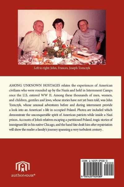 AMONG UNKNOWN HOSTAGES relates the experiences of American civilians who were rounded up by the Nazis and held in Internment Camps once the U.S. entered WWII. Among these thousands of men, women, and children, gentiles and Jews, whose stories have not yet been told was John Tomczyk, whose unusual adventures before and during internment provide a look into an American's life in occupied Poland. Photos are included which demonstrate the unconquerable spirit of American patriots while inside a Nazi prison. Accounts of John's relatives escaping a partitioned Poland, tragic stories of immigrant life in his native Chicago, and the hand fate dealt him after repatriation will show the reader a family's journey spanning a very turbulent century.