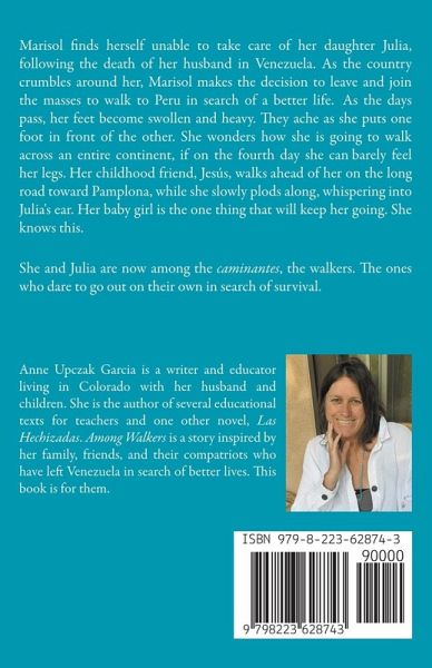 Marisol finds herself unable to take care of her daughter Julia, following the death of her husband in Venezuela. As the country crumbles around her, Marisol makes the decision to leave and join the masses to walk to Peru in search of a better life. As the days pass, her feet become swollen and heavy. They ache as she puts one foot in front of the other. She wonders how she is going to walk across an entire continent, if on the fourth day she can barely feel her legs. Her childhood friend, Jesús, walks ahead of her on the long road toward Pamplona, while she slowly plods along, whispering into Julia's ear. Her baby girl is the one thing that will keep her going. She knows this. She and Julia are now among the caminantes, the walkers. The ones who dare to go out on their own in search of survival.