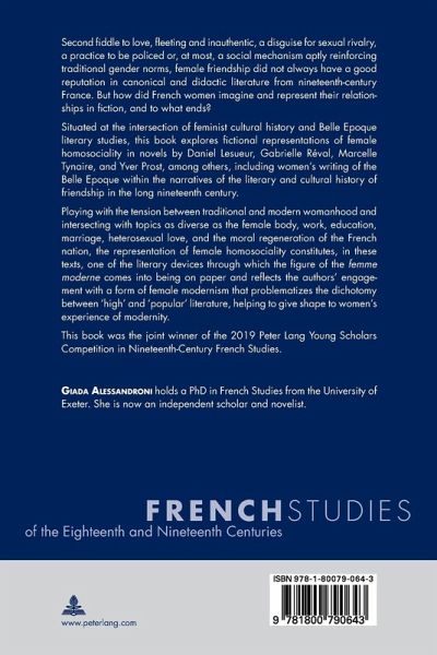 «In the wake of pioneering scholarship by Sharon Marcus and Juliette Rogers, Giada Alessandroni's study situates Belle Époque women's writing in the broader literary and cultural history of friendship, highlighting how representations of female homosociality were used 'to deconstruct gender and redefine modern femininity' (p. 24). One of the work's key strengths lies in its careful navigation of the relationship between subversion and the re-inscription of gender norms in a range of middlebrow works by successful women writers. [...] Of particular interest to scholars of women's writing and the Belle Époque, Alessandroni's analysis nuances our understanding of female homosociality, reminding us that literature need not be avant-garde to reflect socio-cultural change.» (Helen Craske, French Studies 76.3, July 2022)