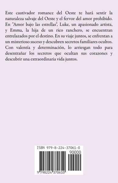 Este cautivador romance del Oeste te hará sentir la naturaleza salvaje del Oeste y el fervor del amor prohibido. En "Amor bajo las estrellas", Luke, un apasionado artista, y Emma, la hija de un rico ranchero, se encuentran entrelazados por el destino. En su viaje juntos, se enfrentan a un misterioso suceso y descubren secretos familiares ocultos. Con valentía y determinación, lo arriesgan todo para desentrañar los secretos que ocultan sus corazones y descubrir una extraordinaria vida juntos.