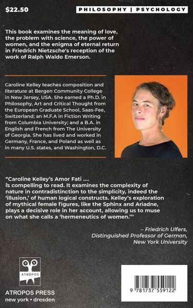 This book examines the meaning of love, the problem with science, the power of women, and the enigma of eternal return in Friedrich Nietzsche's reception of the work of Ralph Waldo Emerson. "Caroline Kelley's Amor Fati .... is compelling to read. It examines the complexity of nature in contradistinction to the simplicity, indeed the 'illusion, ' of human logical constructs. Kelley's exploration of mythical female figures, like the Sphinx and Ariadne, plays a decisive role in her account, allowing us to muse on what she calls a 'hermeneutics of women.''' - Friedrich Ulfers, Distinguished Professor of German, New York University