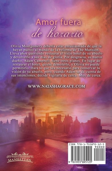Olivia Montgomery debería estar entusiasmada de que la hayan puesto al mando de la reforma de The Mansion. Lleva años queriendo restaurar el viejo hotel de su abuelo y devolverlo a sus días de gloria. Por desgracia, su nuevo dueño, Adam Campbell, tiene otros planes. En lugar de restaurar el hotel, quiere demolerlo, y Olivia no puede permitirlo. Hará lo que sea necesario para conservar la visión de su abuelo, pero, cuando Adam se da cuenta de sus intenciones, decide vigilarla de cerca. Muy de cerca. Amor fuera de horario es una historia autoconclusiva.
