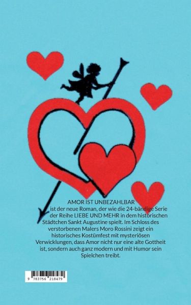 "Amor ist unbezahlbar" ist der neue Roman, der wie die 24-bändige Serie der Reihe LIEBE UND MEHR in dem historischen Städtchen Sankt Augustine spielt. Im Schloss des verstorbenen Malers Moro Rossini zeigt ein historisches Kostümfest mit mysteriösen Verwicklungen, dass Armor nicht nur eine alte Gottheit ist, sondern auch ganz modern und mit Humor sein Spielchen treibt.