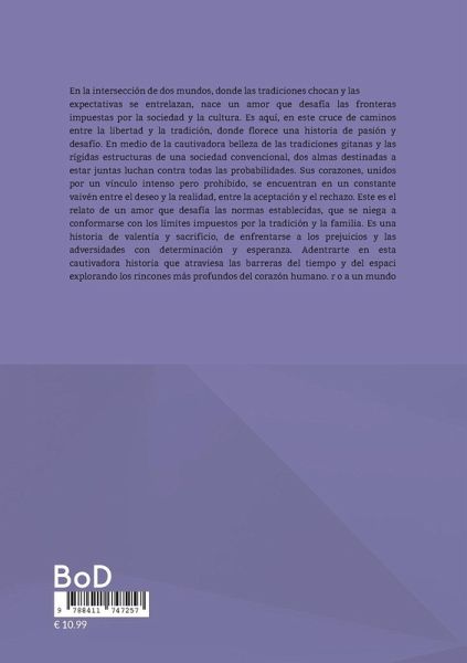 En la intersección de dos mundos, donde las tradiciones chocan y las expectativas se entrelazan, nace un amor que desafía las fronteras impuestas por la sociedad y la cultura. Es aquí, en este cruce de caminos entre la libertad y la tradición, donde florece una historia de pasión y desafío. En medio de la cautivadora belleza de las tradiciones gitanas y las rígidas estructuras de una sociedad convencional, dos almas destinadas a estar juntas luchan contra todas las probabilidades. Sus corazones, unidos por un vínculo intenso pero prohibido, se encuentran en un constante vaivén entre el deseo y la realidad, entre la aceptación y el rechazo. Este es el relato de un amor que desafía las normas establecidas, que se niega a conformarse con los límites impuestos por la tradición y la familia. Es una historia de valentía y sacrificio, de enfrentarse a los prejuicios y las adversidades con determinación y esperanza. Adentrarte en esta cautivadora historia que atraviesa las barreras del tiempo y del espacio, explorando los rincones más profundos del corazón humano. Prepárate para ser transportado a un mundo donde el amor lo es todo, incluso cuando está condenado por aquellos que lo rodean.