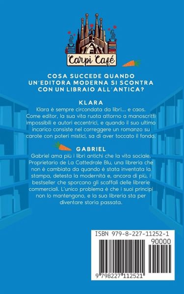 Klara... Klara è sempre circondata da libri... e caos. Come editor, la sua vita ruota attorno a manoscritti impossibili e autori eccentrici, e quando il suo ultimo incarico consiste nel correggere un romanzo su carote con poteri mistici, sa di aver toccato il fondo. Gabriel... Gabriel ama più i libri antichi che la vita sociale. Proprietario de La Cattedrale Blu, una libreria che non è cambiata da quando è stata inventata la stampa, detesta la modernità e, ancora di più, i bestseller che sporcano gli scaffali delle librerie commerciali. L'unico problema è che i suoi principi non lo mantengono, e la sua libreria sta per diventare storia passata. Cosa succede quando un'editora moderna si scontra con un libraio all'antica? Tra libri impolverati, clienti distratti e un adorabile coniglio mangia-cavi, Klara e Gabriel saranno costretti a collaborare per organizzare l'evento letterario dell'anno. Ma più tempo passano insieme, più scoprono che il vero caos non si trova sugli scaffali disordinati della vecchia libreria... ma in quello che provano l'uno per l'altra. ¿ ¿ ¿ ¿ ¿ Amore tra le righe è una commedia romantica piena di umorismo, libri e sorprese inaspettate. Perfetta per chi crede che l'amore possa trovarsi tra le pagine più polverose... o tra due persone che non hanno nulla in comune. Amore tra le righe è un romanzo romantico autoconclusivo che si legge in un battito di ciglia. Introduce la serie contemporanea di romcom Carpi Café e conquisterà le fan del chick lit alla Bridget Jones, Sophie Kinsella e Marian Keyes. Serie Carpi Café (Storie d'Amore alla Caffetteria)Amore al Buio (racconto) Amore tra le Righe Amore in Costruzione Il Mio Coinquilino (Im)perfetto