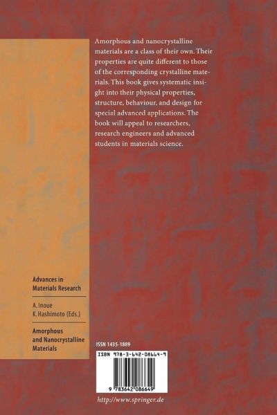 Amorphous and nanocrystalline materials are a class of their own. Their properties are quite different to those of the corresponding crystalline materials. This book gives systematic insight into their physical properties, structure, behaviour, and design for special advanced applications. The book will appeal to researchers, research engineers and advanced students in materials science.