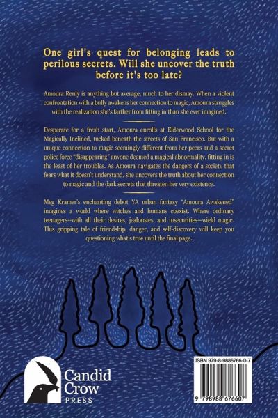 One girl's quest for belonging leads to perilous secrets. Will she uncover the truth before it's too late? Amoura Renly is anything but average, much to her dismay. When a violent confrontation with a bully awakens her connection to magic, Amoura struggles with the realization she's farther from fitting in than she ever imagined. Desperate for a fresh start, Amoura enrolls at Elderwood School for the Magically Inclined, tucked beneath the streets of San Francisco. But with a unique connection to magic seemingly different from her peers and a secret police force "disappearing" anyone deemed a magical abnormality, fitting in is the least of her troubles. As Amoura navigates the dangers of a society that fears what it doesn't understand, she uncovers the truth about her connection to magic and the dark secrets that threaten her very existence. Meg Kramer's enchanting debut YA urban fantasy "Amoura Awakened" imagines a world where witches and humans coexist. Where ordinary teenagers--with all their desires, jealousies, and insecurities-wield magic. This gripping tale of friendship, danger, and self-discovery will keep you questioning what's true until the final page. Buy "Amoura Awakened" today and begin uncovering the untold stories and secrets of the magical world.