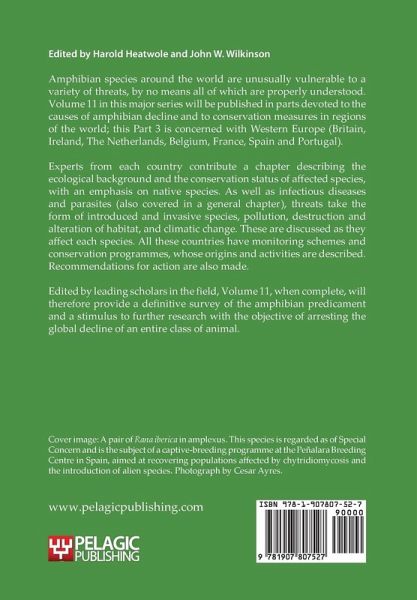 This volume is devoted to the causes of amphibian decline and to conservation measures in Western Europe (Britain, Ireland, The Netherlands, Belgium, France, Spain and Portugal). Experts from each country describe the ecological background and the conservation status of affected species, with an emphasis on native species.