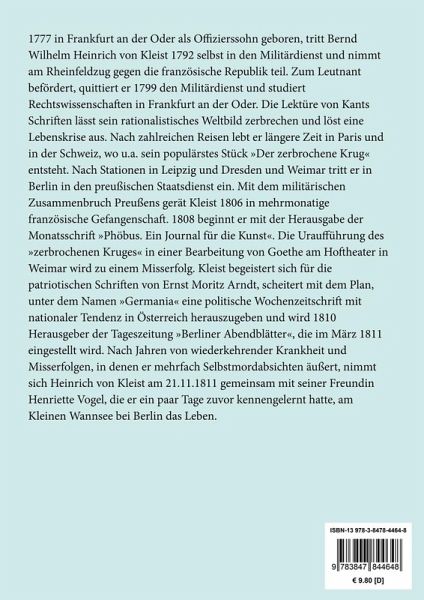 Heinrich von Kleist: Amphitryon. Ein Lustspiel nach Molière Lesefreundlicher Großdruck in 16-pt-Schrift Großformat, 210 x 297 mm Berliner Ausgabe, 2020 Durchgesehener Neusatz mit einer Biographie des Autors bearbeitet und eingerichtet von Theodor Borken Entstanden wohl 1806, Erstdruck: Dresden (Arnold) 1807. Uraufführung am 8.4.1899 in Berlin. Textgrundlage ist die Ausgabe: Heinrich von Kleist: Werke und Briefe in vier Bänden. Herausgegeben von Siegfried Streller in Zusammenarbeit mit Peter Goldammer und Wolfgang Barthel, Anita Golz, Rudolf Loch, Berlin und Weimar: Aufbau, 1978. Umschlaggestaltung von Thomas Schultz-Overhage unter Verwendung des Bildes: Jean Auguste Dominique Ingres, Jupiter und Thetis, 1811. Gesetzt aus der Minion Pro, 16 pt. Henricus Edition Deutsche Klassik UG (haftungsbeschränkt) Über den Autor: 1777 in Frankfurt an der Oder als Offizierssohn geboren, tritt Bernd Wilhelm Heinrich von Kleist 1792 selbst in den Militärdienst und nimmt am Rheinfeldzug gegen die französische Republik teil. Zum Leutnant befördert, quittiert er 1799 den Militärdienst und studiert Rechtswissenschaften in Frankfurt an der Oder. Die Lektüre von Kants Schriften lässt sein rationalistisches Weltbild zerbrechen und löst eine Lebenskrise aus. Nach zahlreichen Reisen lebt er längere Zeit in Paris und in der Schweiz, wo u.a. sein populärstes Stück »Der zerbrochene Krug« entsteht. Nach Stationen in Leipzig und Dresden und Weimar tritt er in Berlin in den preußischen Staatsdienst ein. Mit dem militärischen Zusammenbruch Preußens gerät Kleist 1806 in mehrmonatige französische Gefangenschaft. 1808 beginnt er mit der Herausgabe der Monatsschrift »Phöbus. Ein Journal für die Kunst«. Die Uraufführung des »zerbrochenen Kruges« in einer Bearbeitung von Goethe am Hoftheater in Weimar wird zu einem Misserfolg. Kleist begeistert sich für die patriotischen Schriften von Ernst Moritz Arndt, scheitert mit dem Plan, unter dem Namen »Germania« eine politische Wochenzeitschrift mit nationaler Tendenz in Österreich herauszugeben und wird 1810 Herausgeber der Tageszeitung »Berliner Abendblätter«, die im März 1811 eingestellt wird. Nach Jahren von wiederkehrender Krankheit und Misserfolgen, in denen er mehrfach Selbstmordabsichten äußert, nimmt sich Heinrich von Kleist am 21.11.1811 gemeinsam mit seiner Freundin Henriette Vogel, die er ein paar Tage zuvor kennengelernt hatte, am Kleinen Wannsee bei Berlin das Leben.