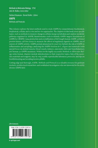 Cutting edge and thorough, AMPK: Methods and Protocols is a valuable resource for graduate students, postdoctoral researchers, and established investigators who are interested in the richly diverse AMPK field.