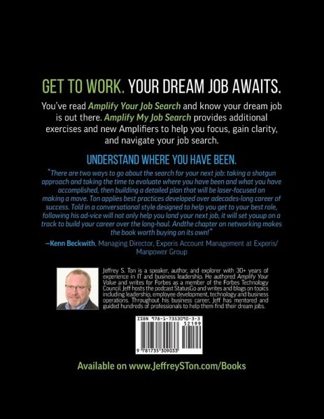 Get to work! Your Dream Job Awaits You've read Amplify Your Job Search and know your dream job is out there. Amplify My Job Search: The Companion Workbook to Amplify Your Job Search provides additional exercises and new Amplifiers to help you focus, gain clarity, and navigate your job search.