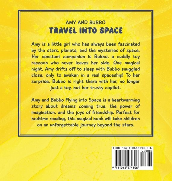 Amy and Bubbo Travel into Space A magical book which will take your child on an adventure through the stars. Amy, a brave and optimistic little girl lives her dream-come-true cosmic adventure together with her favorite toy raccoon who comes to life. Together, they explore a distant planet in another galaxy where they learn about a new way of living and a new way of perceiving the whole universe. Written by Ines, this heartwarming story not only inspires and motivates the little ones but also teaches them about the wonders of the universe, the beauty of our planet and how to preserve it. Ines' vision is to show children that the world is a place of endless possibilities, where everything is interconnected in a magical way. Beautifully illustrated by Michelle, who works with the spiritual world, the love-filled artwork will not only captivate your children's imagination, but will also make them feel calm and positive. This book will encourage your children to believe in their dreams, nurture their sense of wonder, and deepen their appreciation for the world they live in.