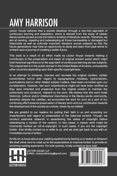 Amy Harrison: Or Heavenly Seed And Heavenly Dew This book is a result of an effort made by us towards making a contribution to the preservation and repair of original classic literature. In an attempt to preserve, improve and recreate the original content, we have worked towards: 1. Type-setting & Reformatting: The complete work has been re-designed via professional layout, formatting and type-setting tools to re-create the same edition with rich typography, graphics, high quality images, and table elements, giving our readers the feel of holding a 'fresh and newly' reprinted and/or revised edition, as opposed to other scanned & printed (Optical Character Recognition - OCR) reproductions. 2. Correction of imperfections: As the work was re-created from the scratch, therefore, it was vetted to rectify certain conventional norms with regard to typographical mistakes, hyphenations, punctuations, blurred images, missing content/pages, and/or other related subject matters, upon our consideration. Every attempt was made to rectify the imperfections related to omitted constructs in the original edition via other references. However, a few of such imperfections which could not be rectified due to intentional\unintentional omission of content in the original edition, were inherited and preserved from the original work to maintain the authenticity and construct, relevant to the work. We believe that this work holds historical, cultural and/or intellectual importance in the literary works community, therefore despite the oddities, we accounted the work for print as a part of our continuing effort towards preservation of literary work and our contribution towards the development of the society as a whole, driven by our beliefs. We are grateful to our readers for putting their faith in us and accepting our imperfections with regard to preservation of the historical content. HAPPY READING!