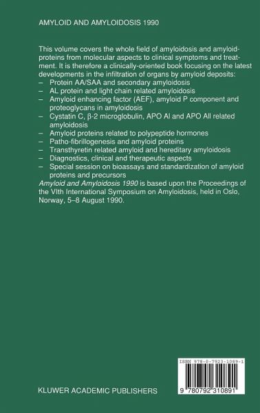 Welcome.- Elliott F. Osserman In Memoriam.- The 1990 Guidelines for Nomenclature and Classification of Amyloid and Amyloidosis.- I Protein Aa/Saa and Secondary Amyloidosis.- The Human Saa Genes and Their Regulation by Cytokines.- Genetic Isofocusing Variant of Human Serum Amyloid A.- Sequence Analysis of a Third Human Saa Gene.- Human Serum Amyloid-A Protein: Variability Demonstrated by Cdna Sequencing and Expression Studies.- Abyssinian Cat Model of Aa Amyloidosis: Saa Gene Analysis.- Mink Serum Amyloid a Protein - Expression and Primary Structure of Amyloidogenic and Non-Amyloidogenic Isotypes.- Primary Structure of Two Rabbit Serum Amyloid a Proteins (Saa) Based on Cdna Sequence.- Biosynthesis and Processing of Saa by Mouse L-Cells Transfected with the Human Saag9 Gene.- Regulation of Serum Amyloid a (Saa) Synthesis in Hep 3B Cells by Cytokines and Corticosteroids.- Regulation of Saa Synthesis by Cytokines in a Human Hepatoma Cell Line.- Saa Secretion from Cytokine-Stimulated Human Hepatoma Cells Requires Hdl.- Interferon a Induces Tnf Elevations in Vivo. Correlation with Other Acute Phase React Ants.- Acute Phase Protein, Serum Amyloid a, Inhibits Il-1- and Tnf-Induced Fever and Hypothalamic Pge2 In Mice.- Human Recombinant TNF-? and Poly I. Poly C Induce Saa and Enhance Amyloidosis in Hamster.- The Physiology of the Acute Phase Serum Amyloid a (Saa) Response in Mice.- Mouse Saa3: Detection in Mouse Tissues with Specific Antibody.- Generation and Use of Site-Specific Antibodies Against Saa.- The N-Terminus is the Lipid-Binding Site of Saa: Supporting Evidence by Moabs.- Epitope Mapping of Amyloid-a Protein Using Monoclonal Antibodies.- Reactive (Aa) Amyloidosis in a 14 Year Old with No Predisposing Disease.- Induction of Amyloidosis in Mice: Preparation of Active Azocasein (Azo) and Effect of Endotoxin (Lps).- Serum Amyloid a (SAA) Induction in the Serum High Density Lipoproteins of the Syrian Hamster.- The Complete Primary Structure of Bovine Serum Amyloid Protein a (SAA) and of Tissue Amyloid Fibril Protein a (AA) Subspecies.- Degradation of Saa in Amyloid Fibrils by Elastase.- Evolutionary Aspects of Protein Saa.- Strain Specific Variation in Expression of Novel Mouse Apo-Saa Isoforms.- Saa Isotypes in Patients with Secondary Amyloidosis.- Differential Regulation of Human Serum Amyloid a Isoforms.- The Effect of SAA-Derived Fragment - SAA2-82 - On Platelet Aggregation.- Serum Amyloid a, An Acute Phase Protein, Inhibits Platelet Activation.- Serum Amyloid a (SAA)-Related Peptide Isolated from Synovial Fluid Modulates Superoxide Production by Human Neutrophils.- Antiplatelet Aggregation Activity of Serum Amyloid a (SAA) Related Peptides.- Effect of Purified Serum Amyloid a on Growth and Differentiation of Transformed Cells.- II Al Protein and Light Chain Related Amyloidosis.- Primary Systemic Amyloidosis (AL) In 1990.- Comparison of the Amino Acid Sequences of Ten Kappa I Amyloid Proteins for Amyloidogenic Sequences.- Characterization of a X Al Protein and Two Amyloidgenic X Bjp in Three Cases of Immunoglobulin Amyloidosis.- Biclonality in Amyloidosis Patient Mal: One Clone Producing an Amyloidogenic, the Other a Non-Amyloidogenic Kappa L-Chain.- Complete Amino-Acid Sequence of a Kappa Light Chain Fragment Isolated from the Urine of Amyloidosis Patient Mal.- Comparative Studies of Two al Chains of Kappa-III Light Chain Origin with and Without Attached Carbohydrate (Al So124 and Al 700).- Structural Studies of two Carbohydrate-Containing Al Chains (?II) Al NøV and Al Mc.- Complete Amino-Acid Sequence of Al-Bence-Jones Protein Pol of the Lambda I Subclass.- Complete Amino-Acid Sequence of Al-Lambda 1.1 Bence-Jones Protein Ezi.- Complete Amino Acid Sequence of A A Amyloid Fibril Protein Isolated from the Liver of Amyloidosis Patient Dia.- Systemic Al Amyloidosis In A Cat.- Experimental Production of Human Amyloidosis Al.- Al Amyloid, L-Chain and L&H-Chain Deposition Diseases: Comparison of Ig Synthesis and Tissue Deposition