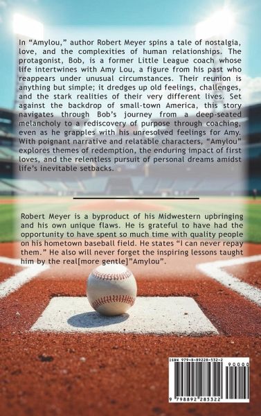 In "Amylou," author Robert Meyer spins a tale of nostalgia, love, and the complexities of human relationships. The protagonist, Bob, is a former Little League coach whose life intertwines with Amy Lou, a figure from his past who reappears under unusual circumstances. Their reunion is anything but simple; it dredges up old feelings, challenges, and the stark realities of their very different lives. Set against the backdrop of small-town America, this story navigates through Bob's journey from a deep-seated melancholy to a rediscovery of purpose through coaching, even as he grapples with his unresolved feelings for Amy. With poignant narrative and relatable characters, "Amylou" explores themes of redemption, the enduring impact of first loves, and the relentless pursuit of personal dreams amidst life's inevitable setbacks.