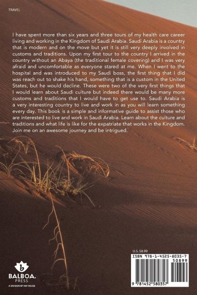 I have spent more than six years and three tours of my health care career living and working in the Kingdom of Saudi Arabia. Saudi Arabia is a country that is modern and on the move but yet it is still very deeply involved in customs and traditions. Upon my first tour to the country I arrived in the country without an Abaya (the traditional female covering) and I was very afraid and uncomfortable as everyone stared at me. When I went to the hospital and was introduced to my Saudi boss, the first thing that I did was reach out to shake his hand, something that is a custom in the United States, but he would decline. These were two of the very first things that I would learn about Saudi culture but indeed there would be many more customs and traditions that I would have to get use to. Saudi Arabia is a very interesting country to live and work in as you will learn something every day. This book is a simple and informative guide to assist those who are interested to live and work in Saudi Arabia. Learn about the culture and traditions and what life is like for the expatriate that works in the Kingdom. Join me on an awesome journey and be intrigued.