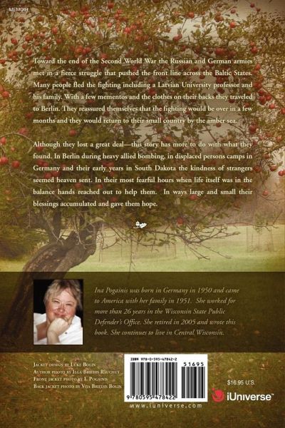 Toward the end of the Second World War the Russian and German armies met in a fierce struggle that pushed the front line across the Baltic States. Many people fled the fighting including a Latvian University professor and his family. With a few mementos and the clothes on their backs they traveled to Berlin. They reassured themselves that the fighting would be over in a few months and they would return to their small country by the amber sea. Although they lost a great deal-this story has more to do with what they found. In Berlin during heavy allied bombing, in displaced persons camps in Germany and their early years in South Dakota the kindness of strangers seemed heaven sent. In their most fearful hours when life itself was in the balance hands reached out to help them. In ways large and small their blessings accumulated and gave them hope.