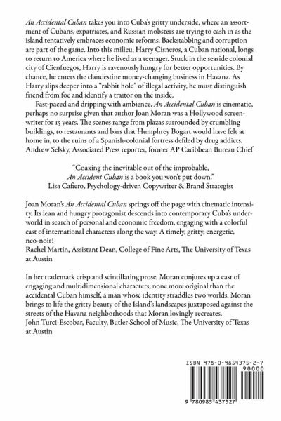 Harry Cisneros desperately wants to escape moribund Cuba, but he is trapped by circumstances - a wife, a daughter and a lack of money. A dead ringer for Leonardo Di Caprio, Harry's three years in New Jersey as a teenager and perfect English make him an American at heart. No longer content to work in a cigar factory, Harry hustles as a translator in the plaza of the colonial city of Cienfuegos. A chance meeting with a young American couple sets Harry off into a dark odyssey. The couple tells Harry about their experience in Havana of changing dollars into CUCs, the Cuban currency used for tourists. Harry decides to travel to the big city of Havana to explore the black market "dollar" business in hopes of making enough money to leave Cuba with his family. Harry meets the characters involved in the money exchange business that pervades Havana's underground - a Cuban, a Silicon Valley entrepreneur, and a French restaurateur. Headquarters is Kirpan, a bustling, trendy Cuban restaurant whose partners send Harry out into the streets and plazas of Havana to change currencies and add more dollars to their coffers to invest in Cuba's potential booming future. A Russian businessman spots Harry hanging around a busy plaza and asks him to do some translating. He sees Harry can be useful to him in other ways and sends him to the government application office to find out how his Russian applications for partnering with the Cuban government measure up against other foreign applications. Spending time inside the Cuban government application office as an unwitting spy, Harry meets a young woman who allows him gather information for the Russian. His search reveals that the partners in Kirpan have also filed applications under a French company. It turns out the French are applying for a wider infrastructure of development and are more competitive than the Russian company. Fidel dies. Havana closes down, but Harry continues to get drawn further into the intrigue and deception of a crew of bad actorsvying for Cuban favors. He encounters a double spy, a Cuban agent, and an interloper navigating the corrupt communist government channels on behalf of the Russian. He is also intrigued by a large application file from a Brazilian tech company to implement a cellular system. When there is suspicion that a traitor exists in the Kirpan operation, he has few options but to stay his course.To survive, Harry has to thread a complicated maze of disappearances, duplicities, low-life, wanna-be business friends from Cienfuegos, a pothead flunky, two subversive French agents, and one of Kirpan's partners. In time, he discovers that he Justin isn't what he seems either. Harry delivers the traitor with the final understanding that the true villain in this story is Justin, a man with no real footprint in the world, a man who works for the highest bidder for the highest price, a con who never keeps his promises. His savior is his enemy, and he is disposable. There is nothing more dangerous than a patient man. No way out, all entrances closed, Harry takes his freedom where he can get it. Expect the unexpected. Harry goes down yet another rabbit hole that costs this accidental Cuban his soul