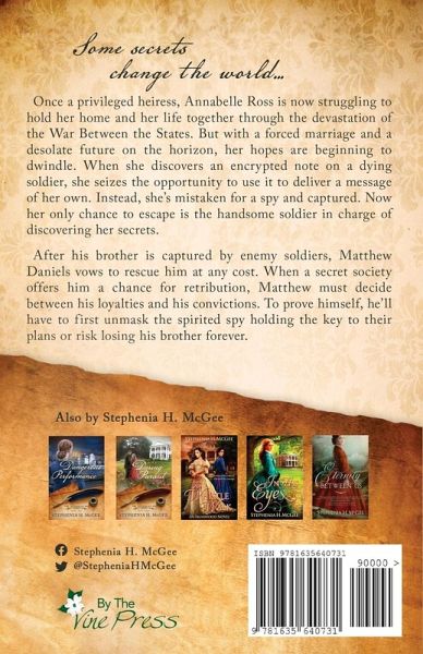 Some secrets change the world... Once a privileged heiress, Annabelle Ross is now struggling to hold her home and her life together through the devastation of the War Between the States. But with a forced marriage and a desolate future on the horizon, her hopes are beginning to dwindle. When she discovers an encrypted note on a dying soldier, she seizes the opportunity to use it to deliver a message of her own. Instead, she's mistaken for a spy and captured. Now her only chance to escape is the handsome soldier in charge of discovering her secrets. After his brother is captured by enemy…mehr