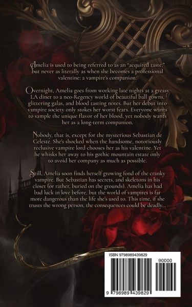 Amelia is used to being referred to as an "acquired taste," but never as literally as when she becomes a professional valentine: a vampire's companion. Overnight, Amelia goes from working late nights at a greasy LA diner to a neo-Regency world of beautiful ball gowns, glittering galas, and blood tasting notes. But her debut into vampire society only stokes her worst fears. Everyone wants to sample the unique flavor of her blood, yet nobody wants her as a long-term companion. Nobody, that is, except for the mysterious Sebastian de Celeste. She's shocked when the handsome, notoriously reclusive vampire lord chooses her as his valentine. Yet he whisks her away to his gothic mountain estate only to avoid her company as much as possible. Still, Amelia soon finds herself growing fond of the cranky vampire. But Sebastian has secrets, and skeletons in his closet (or rather, buried on the grounds). Amelia has had bad luck in love before, but the world of vampires is far more dangerous than the life she's used to. This time, if she trusts the wrong person, the consequences could be deadly...