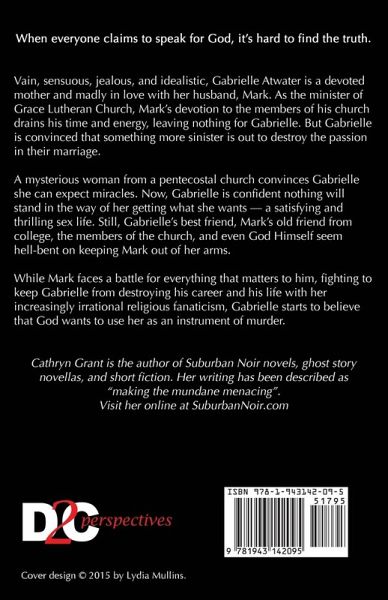 When everyone claims to speak for God, it's hard to find the truth. Vain, sensuous, jealous, and idealistic, Gabrielle Atwater is a devoted mother and madly in love with her husband, Mark. As the minister of Grace Lutheran Church, Mark's devotion to the members of his church drains his time and energy, leaving nothing for Gabrielle. But Gabrielle is convinced that something more sinister is out to destroy the passion in their marriage. A mysterious woman from a pentecostal church convinces Gabrielle she can expect miracles. Now, Gabrielle is confident nothing will stand in the way of her getting what she wants -- a satisfying and thrilling sex life. Still, Gabrielle's best friend, Mark's old friend from college, the members of the church, and even God Himself seem hell-bent on keeping Mark out of her arms. While Mark faces a battle for everything that matters to him, fighting to keep Gabrielle from destroying his career and his life with her increasingly irrational religious fanaticism, Gabrielle starts to believe that God wants to use her as an instrument of murder.