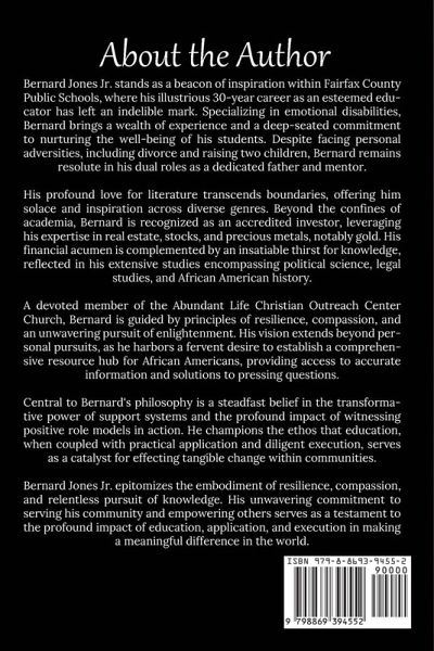 In "An African American Community Center," the author "Bernard H. Jones Jr" takes you on a transformative journey that digs into the rich history, vibrant culture, and resilient spirit of African Americans. This book is a powerful tool created to aid readers with the knowledge, strategies, and inspiration needed to navigate the complexities of today's world and build a brighter future for themselves and their community. "An African American Community Center" is more than a book-it's a journey to help us define our true potential and building a united, thriving community. Whether you're looking to overcome personal challenges, strengthen your connections, or make a strong impact, this book offers the tools and inspiration you need to succeed.