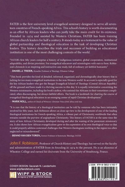 FATEB is the first university level evangelical seminary designed to serve all seventeen countries of French-speaking Africa. This school's history is worth documenting as an effort by African leaders who can justly take the main credit for its existence. Founded in 1974 and assisted by Western Christians, FATEB has been training African church leaders for half a century. It stands today as a testament to the value of global partnership and theological education in the task of developing Christian leaders. This history describes the trials and successes of building an educational institution in one of the most challenging contexts of the world.