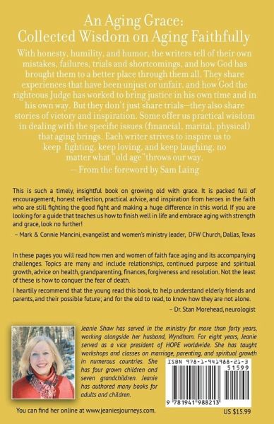 Collected Wisdom on Aging Faithfully. With honesty, humility, and humor, the writers tell of their own mistakes, failures, trials and shortcomings, and how God has brought them to a better place through them all. They share experiences that have been unjust or unfair, and how God the righteous Judge has worked to bring justice in his own time and in his own way. But they don't just share trials-they also share stories of victory and inspiration. Some offer us practical wisdom in dealing with the specific issues (financial, marital, physical) that aging brings. Each writer strives to inspire us to keep fighting, keep loving, and keep laughing, no matter what "old age"throws our way. - From the foreword by Sam Laing