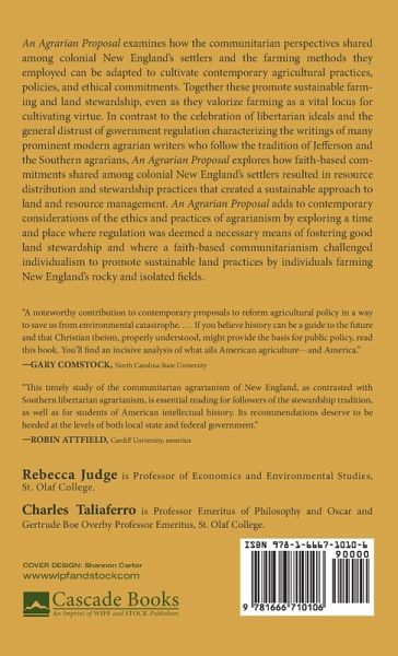 An Agrarian Proposal examines how the communitarian perspectives shared among colonial New England's settlers and the farming methods they employed can be adapted to cultivate contemporary agricultural practices, policies, and ethical commitments. Together these promote sustainable farming and land stewardship, even as they valorize farming as a vital locus for cultivating virtue. In contrast to the celebration of libertarian ideals and the general distrust of government regulation characterizing the writings of many prominent modern agrarian writers who follow the tradition of Jefferson and the Southern agrarians, An Agrarian Proposal explores how faith-based commitments shared among colonial New England's settlers resulted in resource distribution and stewardship practices that created a sustainable approach to land and resource management. An Agrarian Proposal adds to contemporary considerations of the ethics and practices of agrarianism by exploring a time and place where regulation was deemed a necessary means of fostering good land stewardship and where a faith-based communitarianism challenged individualism to promote sustainable land practices by individuals farming New England's rocky and isolated fields.