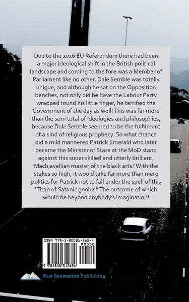 Due to the 2016 EU Referendum there had been a major ideological shift in the British political landscape and coming to the fore was a Member of Parliament like no other. Dale Semble was totally unique, and although he sat on the Opposition benches, not only did he have the Labour Party wrapped round his little finger, he terrified the Government of the day as well! This was far more than the sum total of ideologies and philosophies, because Dale Semble seemed to be the fulfilment of a kind of religious prophecy. So what chance did a mild mannered Patrick Emerald who later became the Minister of State at the MoD stand against this super skilled and utterly brilliant, Machiavellian master of the black arts? With the stakes so high, it would take far more than mere politics for Patrick not to fall under the spell of this 'Titan of Satanic genius!' The outcome of which would be beyond anybody's imagination!